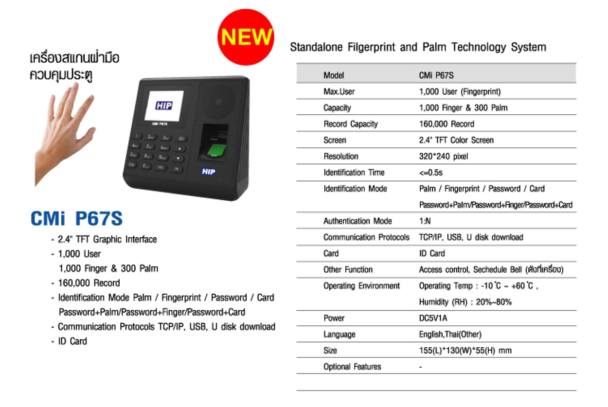 เครื่องสแกนฝ่ามือ,Hip ,CMI P67S